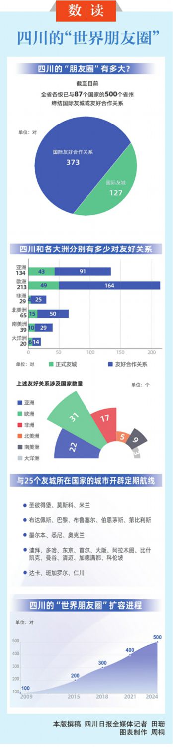四川取8个国际友城签订相关敌对合做和谈,《2024四川国际友城合做取成长大会》正式发布,远道而来的伴侣“兵分多”全方位感触感染四川成长……11月11日至13日,2024四川国际友城合做取成长大会正在川成功举办。短短3天,热情好客的四川送来了全球的友城伴侣,大会结出了丰盛的合做。这是自2019“一带一”四川国际友城合做取成长论坛成功举办以来,四川再次举办大规模、高规格的国际友城大会。时隔5年,全球五大洲30个国度的43个外国友城代表团共300余名中外嘉宾再聚天府之国,哪些主要信号?将来,四川国际友城扶植又将有哪些规划和方针?11月12日,正在2024四川国际友城合做取成长大会揭幕式上,四川取8个国际敌对城市集中签订相关敌对合做和谈,包罗取西班牙卡斯蒂亚拉曼查自治区签订《中华人平易近国四川省取西班牙王国卡斯蒂亚拉曼查自治区成立敌对省区和谈》,结为正式友城;取埃及卢克索省、马尔代夫阿杜市、吉尔吉斯斯坦奥什州、老挝万象市签订敌对合做关系备忘录,取市、越南太原省签订成立敌对合做关系意向书;以及取白俄罗斯戈梅利州签订《中华人平易近国四川省取白俄罗斯国戈梅利州2025—2027年成长经贸和人文范畴合做步履打算》。一次性成功“牵手”7个国际友城,这不只是此次大会的一大亮点,也是近年来四川高程度对外的一次集中表现。梳理四川国际“伴侣圈”的扩容历程,不难发觉近10年来增速尤为较着。1982年10月,四川省取美国州缔结了敌对省州关系,成立了四川第一对省级国际敌对城市。2009年,四川国际友城和敌对合做关系城市数量冲破100对,2015年增加到200对。从“1”到“100”,四川用了27年时间,从“100”到“200”,四川用了6年时间。截至目前,四川全省各级已取500个省州的城市缔结国际友城或敌对合做关系,10年间,四川国际“伴侣圈”实现了成倍增加,特别是正在过去短短3年,四川就新“牵手”了100个国际老友。除了增速较着,四川国际友城的范畴也正在不竭扩大。从逾越半球远隔沉洋的阿根廷布宜诺斯艾利斯省,到相隔不到2000公里的老挝,现在四川的国际友城收集已遍及全球五大洲的87个国度。“目前,我们撒马尔罕州取四川曾经成立了敌对合做关系,我们出格但愿可以或许尽快鞭策两边结为正式友城,相信这将为两边带来更多的合做机缘。”乌兹别克斯坦撒马尔罕州副州长科比洛夫正在参会期间向记者分享了本人的等候。除了撒马尔罕州,越来越多的外国地域和城市都表达出对取四川鞭策国际友城扶植以及各范畴合做的等候,做为外事大省和国际敌对城市工做大省的四川,也正正在建立起越来越慎密、越来越立体的国际友城收集。“2024四川国际友城合做取成长大会的交换,并不只仅关乎经济合做取好处,更是着眼于我们配合建立一个灿烂的将来,拥抱前沿合做,实现互利共赢。”“此次大会为参会地域和城市供给了罕见的机遇,配合切磋更多跨范畴的合做。”正在国际友城省州长圆桌会议上,赞比亚卢萨卡省省长谢尔·穆利亚塔、摩洛哥王国非斯-梅克内斯大区安萨利等表达了对此次大会的必定。交换越多,领会就越深,合做空间天然就会更大。会场表里各个交换环节,经贸合做、人文交换、互联互通等都是友城代表团口中的高频词,不少友城代表也纷纷暗示“本人是带着使命来的”。厄瓜多尔圣多明各-德洛斯查奇拉斯省省长约翰娜·努涅斯说:“我们取眉山市结好后开展了良多关于竹编方面的交换,这取我们鼎力成长的环保财产很是契合,此次来川也但愿借此机遇可以或许寻求更多正在竹编财产上的合做机遇。”韩国全罗南道行政副知事明昌焕、乌兹别克斯坦撒马尔罕州副州长科比洛夫则不约而同表达了但愿取成都之间开通曲航航路的等候。“成都是中国内地第三座同时运营双国际枢纽机场的城市,若是成都能开通曲航全罗南道的航路,必将可以或许愈加无力地鞭策两边更多合做。”明昌焕暗示。出格值得一提的是,此次大会期间,正在取会各方的配合下,一份具有指南意义的务实——《2024四川国际友城合做取成长大会》也正式发布,明白提到“面向充满机缘和挑和的将来,要更好阐扬友城交往桥梁感化,彼此卑沉、平等相处、互信包涵、互利合做的准绳,共商、共建、共享的,建立长效交换机制,搭建务实合做平台,拓展多方合做模式,推进友城共赢成长”并通过“互利互惠”“互联互通”“互帮互帮”“互鉴互动”为四川国际友城扶植工做供给务实的鞭策指南。会场外,匈牙利佩斯州交际事务担任人尼特拉伊·格尔盖伊·亚诺什津津有味地同大师分享:“虽然我没有尝过所有处所的川菜,但就我小我的体验来说,欧洲的川菜馆里,匈牙利的川菜馆绝对常不错的。”川剧、彩灯、大熊猫、川菜……近年来,越来越多的四川元素正在国际上出圈,此次大会期间,通过各类参不雅走访、体验非遗文化等,四川文化再次“圈粉”了一多量远道而来的伴侣。马尔代夫阿杜市市长尼扎尔说:“来到这里之后,我发觉四川实的是富裕取天然之美同正在的处所。文化交换可以或许更好地推进两边合做成长,但愿以此次取四川签订敌对合做关系备忘录为契机,进一步加深交换合做。”取此同时,马尔代夫旅逛部长易卜拉欣·费萨尔还带来了马尔代夫最南端城市阿杜市将取中国开通曲航的好动静。青少年间的交换往来也是各个友城代