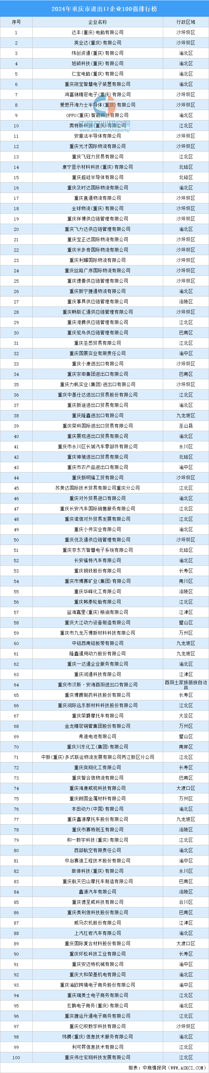 中商谍报网讯:3月13日,进出口商会2024年度会员大会暨“稳增量、提质量”外贸从题勾当举行,达丰电脑无限公司等100家企业上榜。进出口企业100强企业中,渝北区、沙坪坝区各上榜企业100家企业,渝中区、巴南区各5家企业上榜。